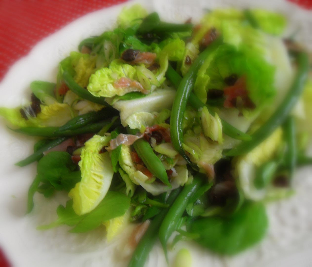 *Baby Gem and Green Bean Salad with a Prosciutto and Prune Dressing*