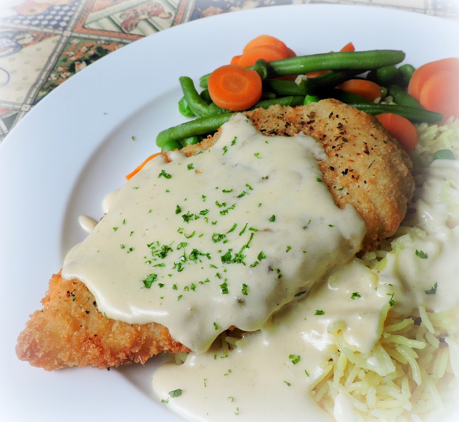 Just look at that moist, perfectly cooked chicken . . . with its crispy coating and that beautifully silky sauce. Oh boy but this is some good eating! Bon Appetit!