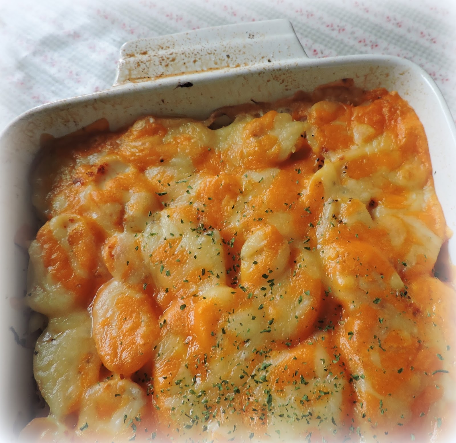 There is a nice layer of cheese on top. I think toppings like cheese and breadcrumbs are some of the things which  make most casseroles automatically taste better!  I do so love a good casserole!