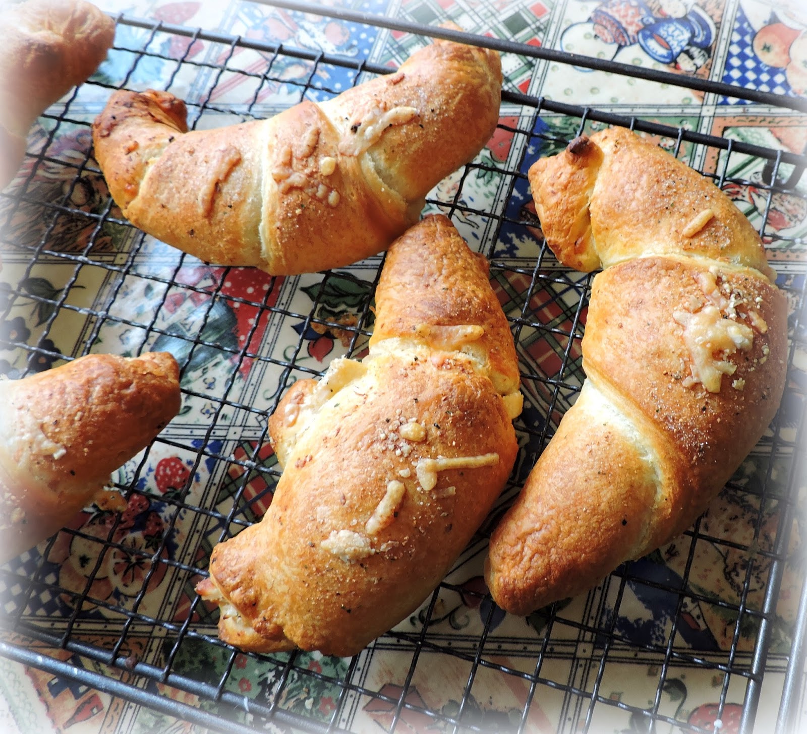 In North American use the Pillsbury Crescent Roll dough that you find in the grocery store. I believe you will get a couple more than we get in our packs over here, but just make the filling stretch to fill them, or add a bit more of everything to the mix. In any case, these are fabulously delicious! Simple, easy, quick and delicious, plus no waste. Nom Nom!