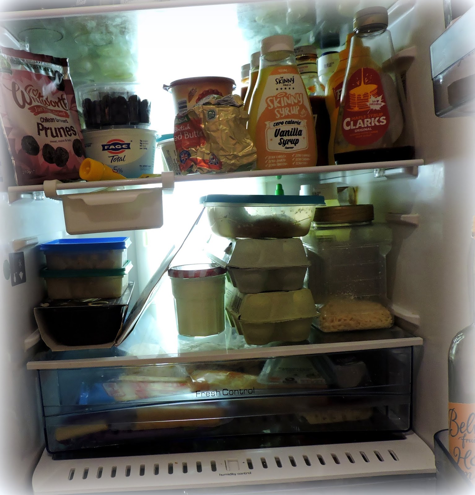 In all truth most jars and packs will tell you the shelf life of said article after opening, and its usually not very long.  Then too, you organise your fridge and it soon gets messy again with things being taken out and put back in.  I always give it a good lick and a promise about once a month anyways, but before Christmas I like to really have a good go at it, so that I have enough space for all the Christmas goodies we will be getting in.