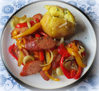 until the sausage and vegetables are gilded on the edges. Serve hot