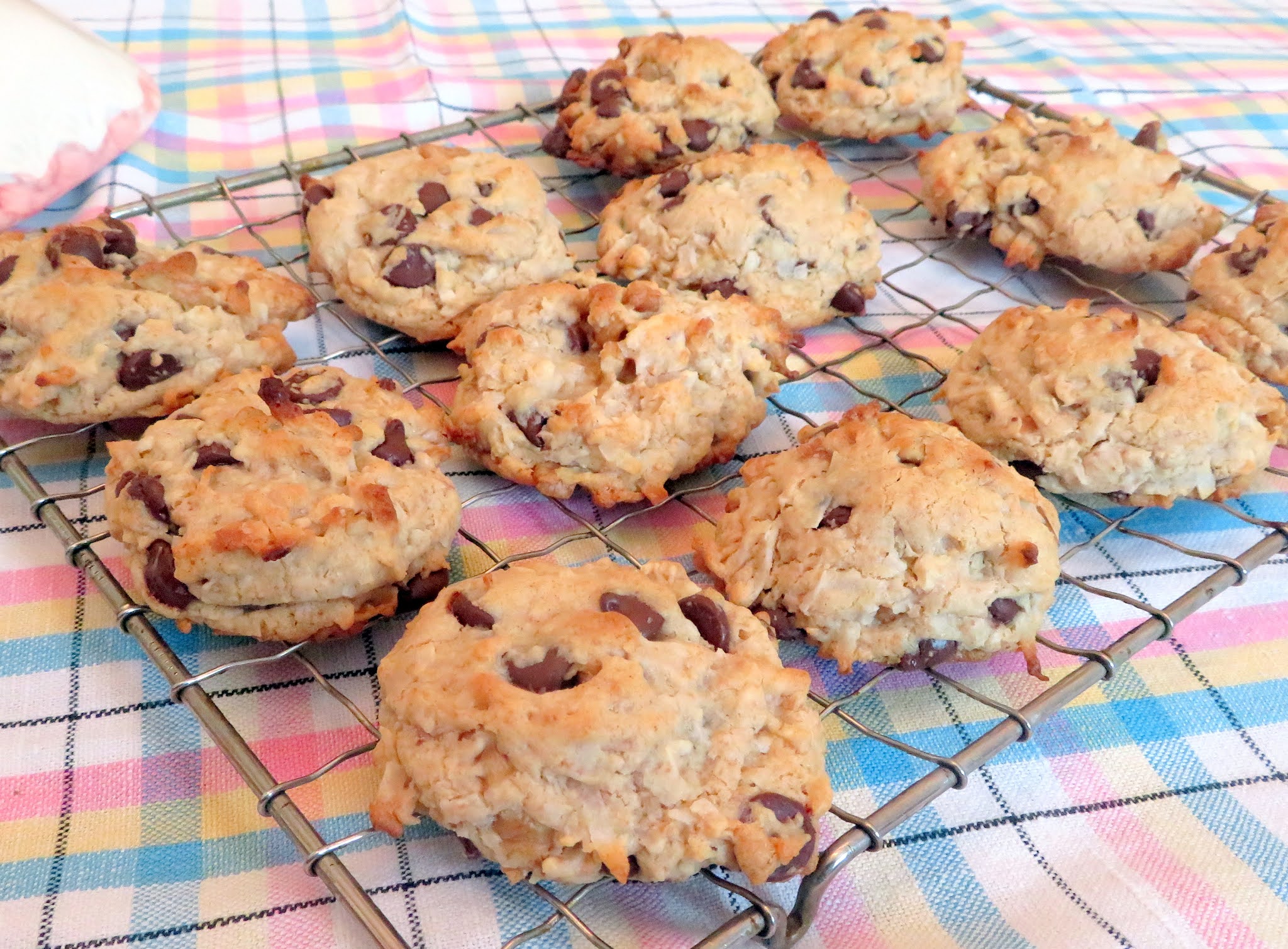 There is a goodly amount of nuts and coconut as well.  These are stuffed full of yumminess. I have seen some people replacing the coconut with oatmeal. One recipe I saw replaced the coconut with 3/4 cup of old fashioned oats (3 ounces).  Apparently the cookies are not quite as chewy when made with the oats.